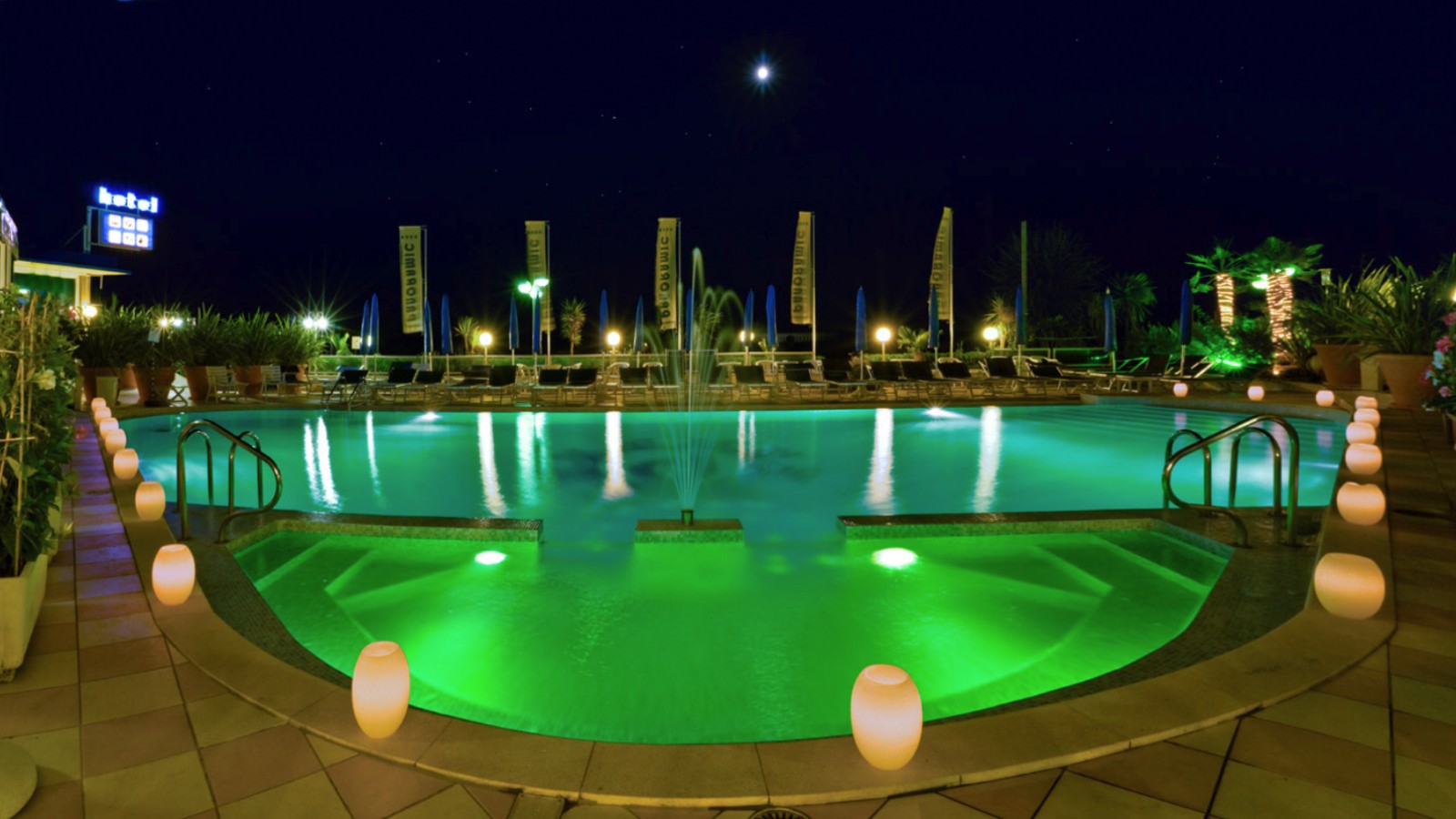 The swimming pool, unique in his kind, is located in front of the sea. It gives our guests the opportunity to enjoy an unbelievable sight. Besides the notable dimensions (20x9 m.) that give every guests a pleasant and comfortable swim, the swimming pool has also a whirlpool-edge. And it is surrounded by a spacious terrace , in which there is the bar and the solarium equipped with sunbeds ( to reserve) and chairs
