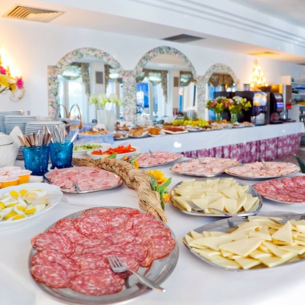 The breakfast buffet "Buongiorno Panoramic" is "sweet&savoury". It starts at 7.30 a.m. and finishes atl 10.30 a.m. at the Panoramic terrace around the pool. From here you can admire our lovely beach and sea.