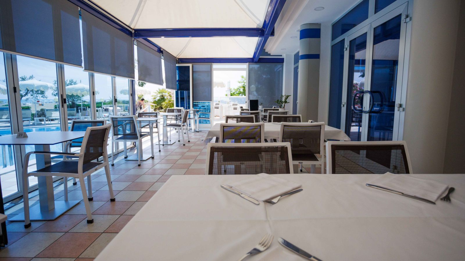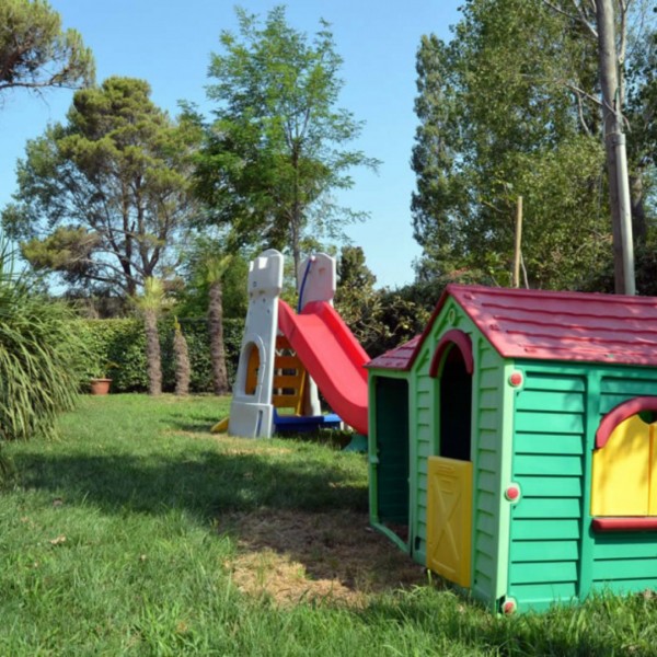 Immergé parmi les pins maritimes, le jardin de l'hôtel est un lieu d'absolue relaxation pour les adultes grâce aux transats mis à leur disposition.Pour les enfants c'est un endroit de jeu où ils s'amuseront sur le toboggan ou dans la maisonnette de la marque de jeux CHICCO. Ainsi grands et petits pourront s'amuser en pleine verdure et en plein air.